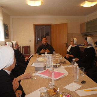 Nakon nagovora fra Franje Radmana, provincijalna poglavarica, s. M. Julijana Djaković je prepustila riječ s. M. Vinki Bilješko koja je s nama podijelila svoje razmišljanje o zajedništvu. Ono je veoma važno jer s njim stojimo ili padamo. Zajednica je mjesto u kojem činimo milosrđe. Bog se utjelovio u narav svake sestre; trebamo jedna drugu gledati u tome duhu, živjeti život zajedništva, davati dobar primjer, a samim tim i očekivati dobar primjer svoje susestre. Za kvalitetno zajedništvo potrebno je napustiti život individualizma, ugrađivati se i darivati za zajednicu, u zajednici i za zajedništvo. Bit kršćanstva je zajedništvo. ,, Ljubite jedni druge kao što sam ja vas ljubio, tako i vi ljubite jedni druge! '' ( Iv. 13, 34 ) Zajednice se obnavljaju kada su spremne poći u susret čovjeku patniku, kada žive u potpunosti svoju karizmu, kad imaju zajedničku viziju kako ostvariti karizmu danas i osigurati da se ona nastavi sutra.